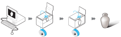 The principle of the 3D printing technology of Fused Deposition Modeling (FDM) is simple. It is similar to using a hot glue gun. The material is heated until medlted and then forced through a fine nozzle at the end of the glue gun. The difference is that the “flue” that is inserted into the printer is a long plastic wire called a filament. The nozzle of the printer moves and draws a pattern with the material layer by layer. When a model contains overhands, the printer builds support so that you can print in “thin air”. The supporting material must be removed when the print is finished.